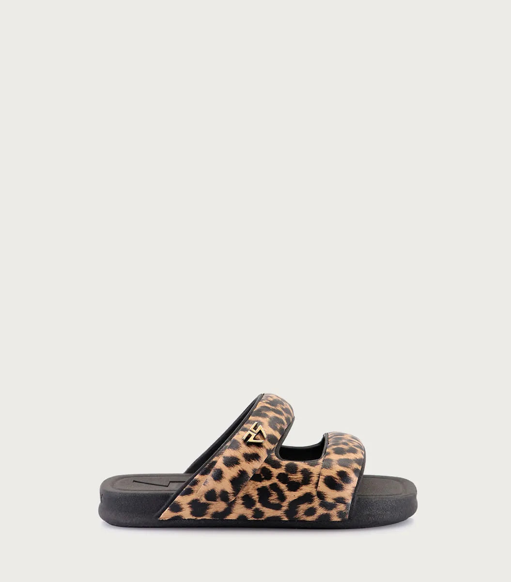 Plataforma Koru animal print, inyectada con estampa y herraje de logo. Un modelo que fusiona estilo y practicidad.
